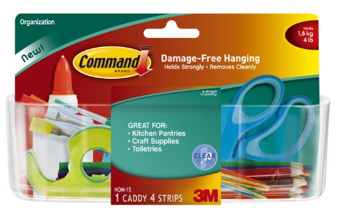 Command Clear Organization Products provide handy, stylish organization without wall-damaging nails, screws, tacks or permanent adhesives. Using the revolutionary Command Clear Adhesive Strips, they hold strongly on a variety of surfaces, including painted surfaces, wood, tile, metal and more. Yet, they also come off cleanly-no holes, marks, sticky residue or stains. No problem to move your Command Organization Products, just apply a Command Clear Refill Strip, so you can use them again and again. Available in a variety of shapes and sizes, Command Clear Organization Products help you keep everything in your dorm room, apartment, home and office in its place and organized.