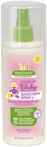 Fun in the sun shouldn't end with a sting! BabyGanics' Cover-Up Baby Sunscreen is specially formulated to help protect the tiniest of tots and retains its SPF strength for up to 80 minutes - even after a dip in the kiddie pool (now that's what we call waterproof). This mineral based 50? spray provides broad spectrum UVA/UVB protection and even moisturizes as it protects. So go ahead and use it everywhere....face and body - BabyGanic's has your little one covered!