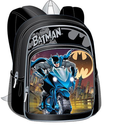 Your Batman fan will love toting his books to school in this Batman 16 inch Backpack - (P2CFJ8TR). Featuring 1 front pocket, side mesh pockets, padded straps and back for total comfort.