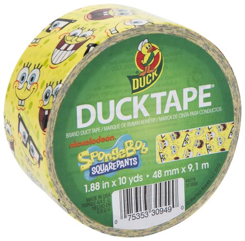 Add a splash of fun and creativity to your next project with SpongeBob SquarePants Duck brand duct tape. This new pattern, starring the most beloved yellow sponge from Nickelodeon's hit animated series, features a bright yellow background with multiple SpongeBob expressions demonstrating his silly humor and enthusiasm. Whether you're a longtime SpongeBob fan or new to his adventures, this creative collage shows the qualities that have made the optimistic underdog so popular. Each roll is 1.88-Inch wide by 10 yards long. It features high performance strength and adhesion characteristics, tears easily by hand without curling, and conforms to uneven surfaces. Duck Tape is America's favorite fix-all. From industrial strength to general purpose, Duck Brand Duct Tape comes in a variety of shapes, strengths and colors.