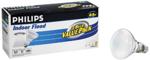 Philips 65-Watt BR30 indoor flood light 3-Pack is ideal for use in kitchens, living rooms, dining rooms, offices, family rooms and bedrooms. It has a soft, white light creating a relaxing and comfortable environment and is fully dimmable so you can instantly change the mood of any room. Philips standard indoor flood lights provide a wide beam of light which is best for general room lighting. Philips indoor flood light bulbs can be used in the following fixtures: Recessed cans. Track lights. Brighten your home with soft, white light. Designing with light can dramatically change the mood, look and functionality of any room in your home. Philips Lighting Company offers a wide variety of products to meet your lighting needs to help you achieve the look and mood you desire for your home. Philips standard incandescent bulbs provide a soft, white light helping to create a relaxing and comfortable environment. A wide assortment of shapes, sizes and wattages ensures that there is an incandescent product to meet your most basic lighting need. Philips standard incandescent light bulbs are ideal for general or ambient lighting in any room of your home.
