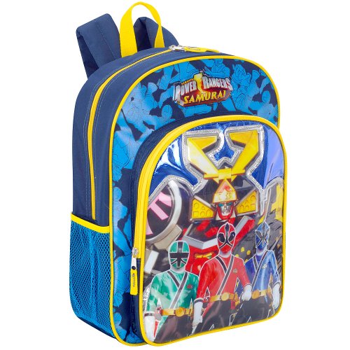 Be prepared for school, sleepovers, and saving the day with this awesome Power Rangers Samurai Backpack! The front panel is designed with raised Power Rangers graphics, shiny silver accents, and yellow trim. It's just the right size to take to school or on overnight trips and features two zippered compartments for holding books, toys, school supplies, clothes and more. Padded, adjustable straps ensure a comfortable fit, and mesh pockets on either side are great for stashing water bottles. The Power Rangers 16 inch Samurai Backpack - Black features: Includes 1 backpack Front panel is decorated with raised Power Rangers graphics, shiny silver accents and yellow trim Large main compartment and a smaller front pocket; zippers keep contents secure Mesh pouches on sides for holding water bottles Padded, adjustable straps for comfortable carrying Made of durable materials Dimensions: 16 x 12 x 5 inches