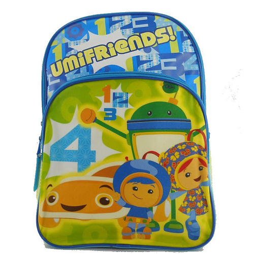 This Team Umizoomi 16 inch Backpack - UmiFriends features Team Umizoomi against a colorful bright background. Has an additional front pocket for extra strorage, 2 side mesh pockets and adjustable straps for comfort.